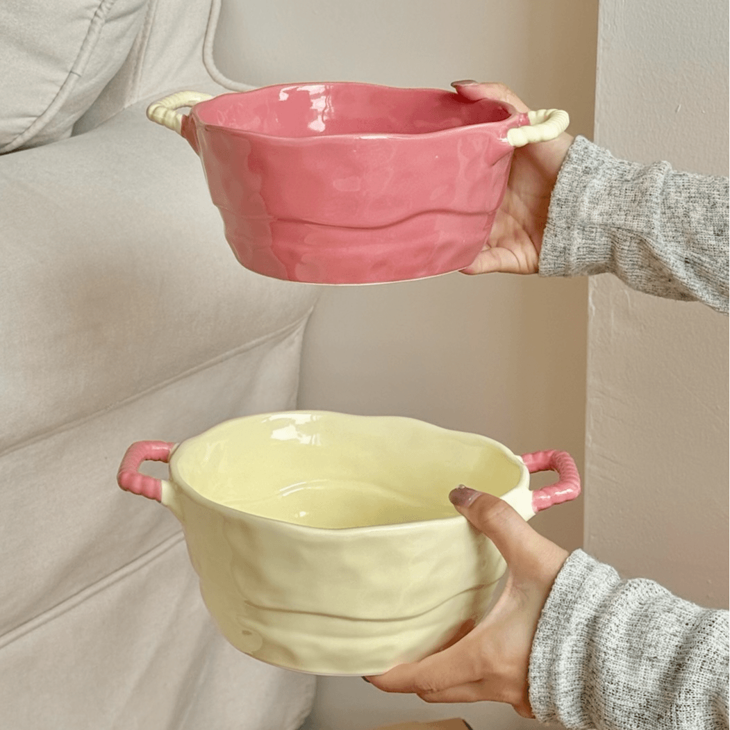 釉下彩陶瓷双耳泡面碗大号家用餐具汤碗学生拉面碗可爱水果沙拉碗