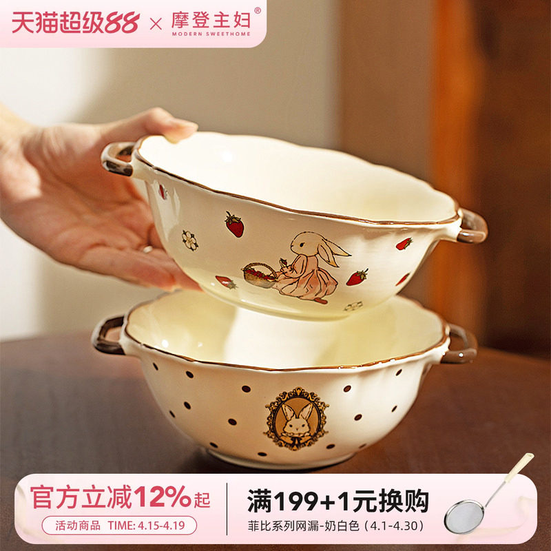摩登主妇赫拉兔双耳汤碗陶瓷拉面泡面碗家用2026新款大号汤盆大碗