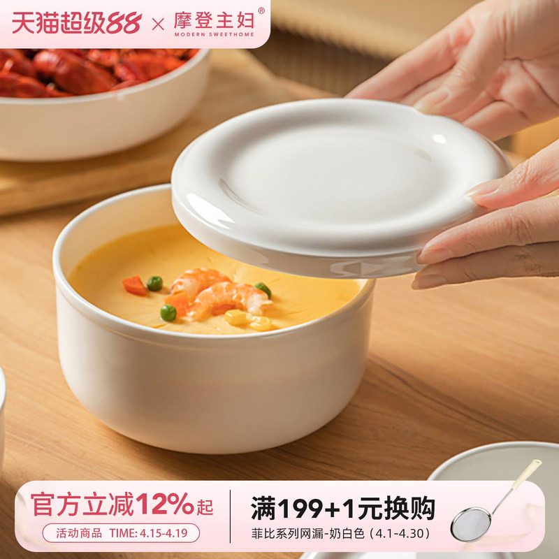 摩登主妇白瓷带盖蒸蛋碗家用2026新款陶瓷炖盅炖蛋蒸鸡蛋羹专用碗