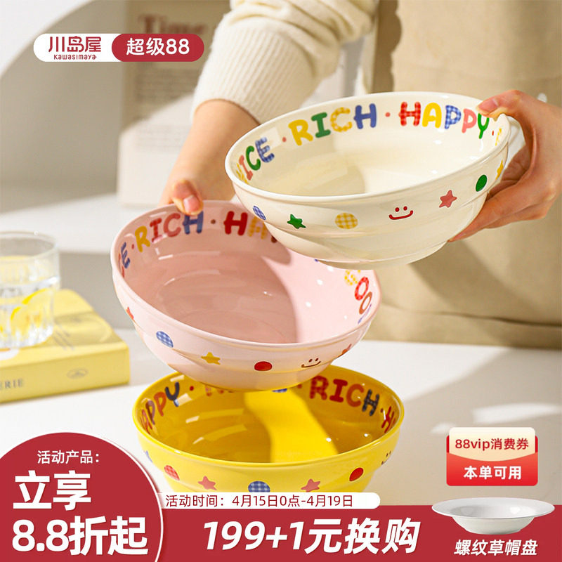 川岛屋可爱炸虾碗家用饭碗汤碗具陶瓷泡面碗餐盘子一人食漂亮餐具