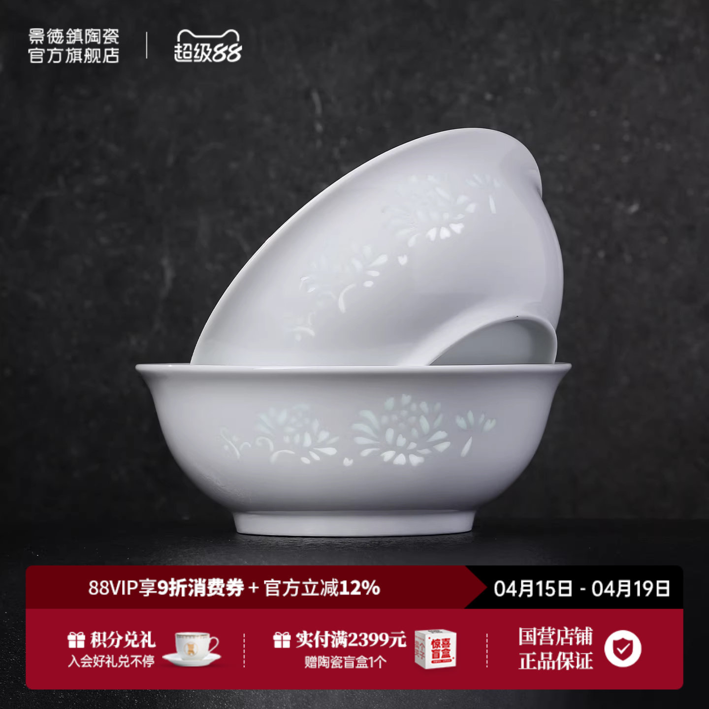 景德镇官方陶瓷大面碗汤碗中式家用6英寸高温白瓷餐具泡面碗单个