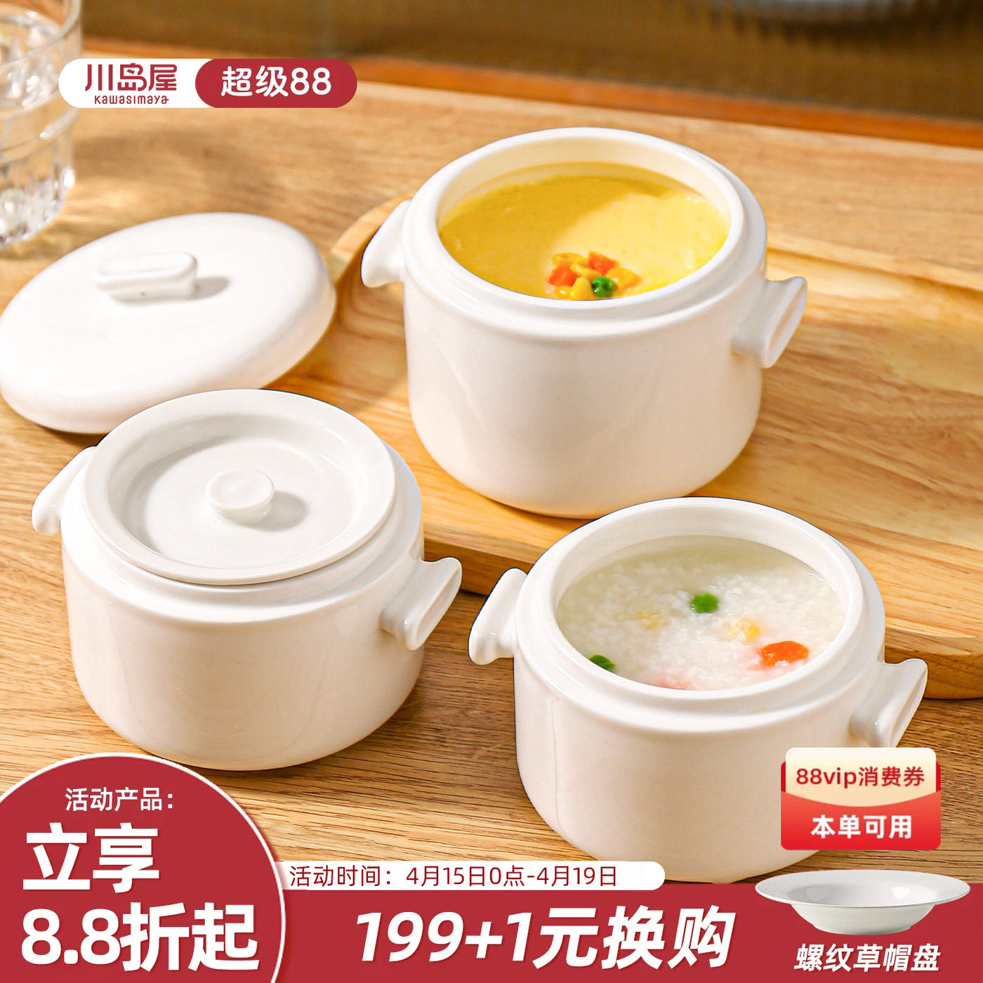 川岛屋炖盅隔水炖家用陶瓷带盖一人份小瓦罐汤盅蒸盅蒸蛋羹专用碗