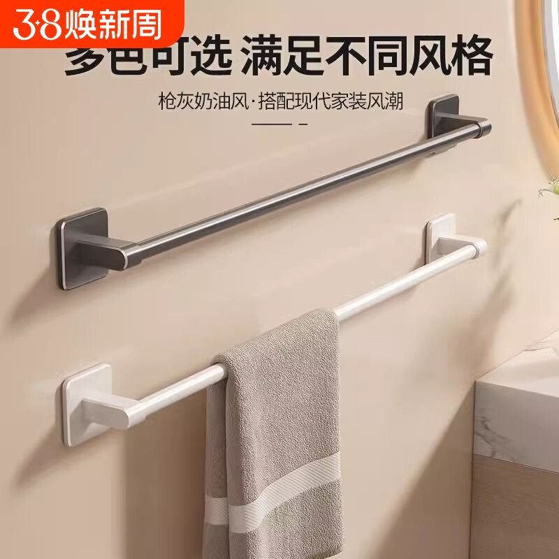 毛巾架免打孔卫生间壁挂式浴室毛巾单杆置物架洗手间浴巾收纳挂架