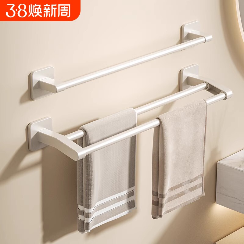 卫生间毛巾架加长单杆双杆免打孔浴室置物架厕所晾毛巾浴巾太空铝