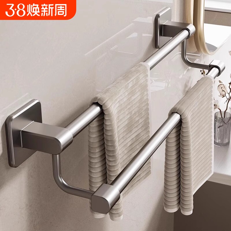 枪灰色单杆毛巾架免打孔卫生间不锈钢毛巾杆洗手间浴室双杆浴巾架