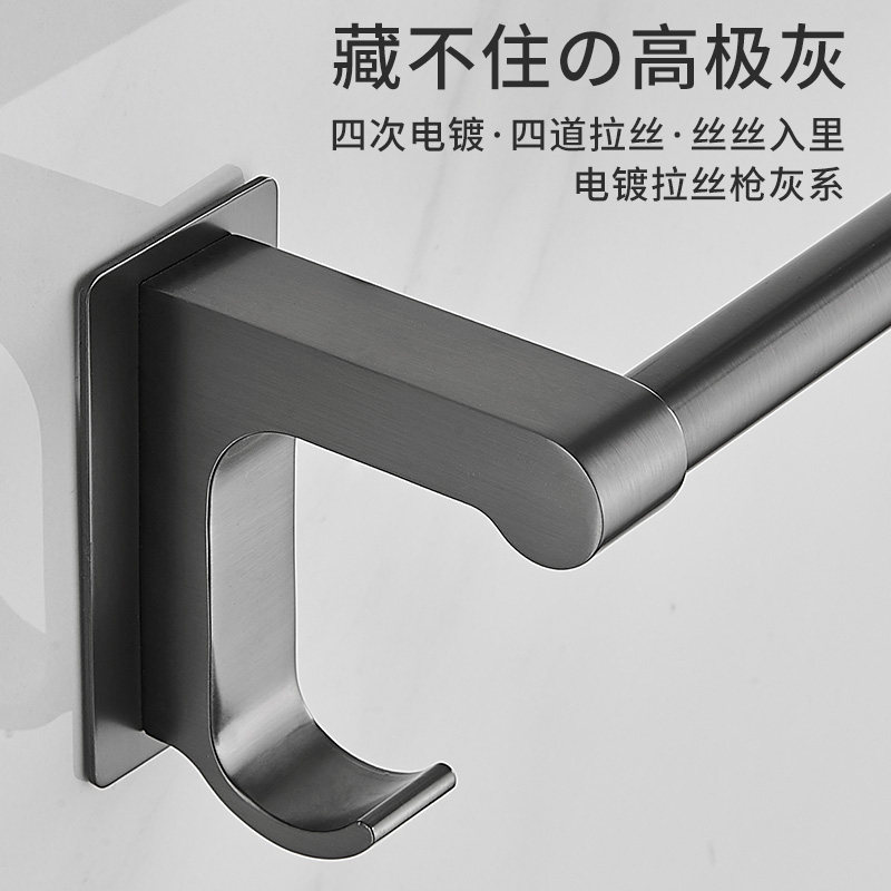 卫生间拉丝枪灰色免打孔单杆毛巾架浴室带挂钩款不锈钢浴巾置物架