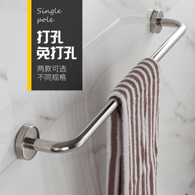 毛巾杆单杆免打孔304不锈钢卫生间毛巾架加长厕所浴室浴巾置物架