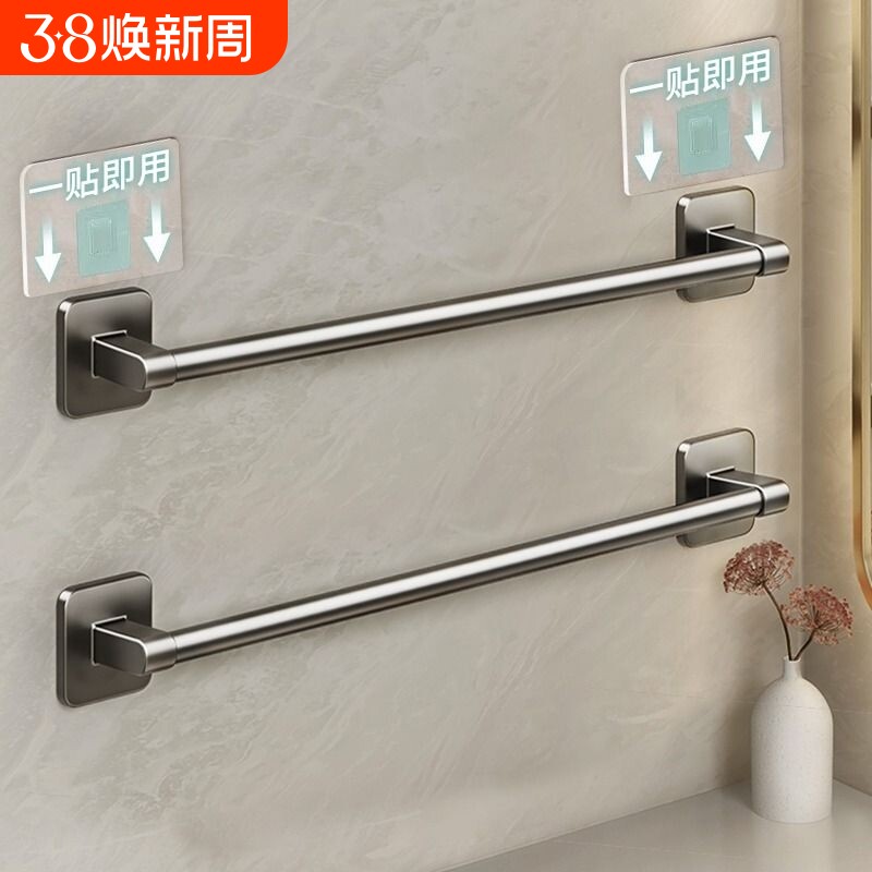浴室毛巾架免打孔 卫生间304不锈钢毛巾杆极简轻奢单杆挂毛巾架子