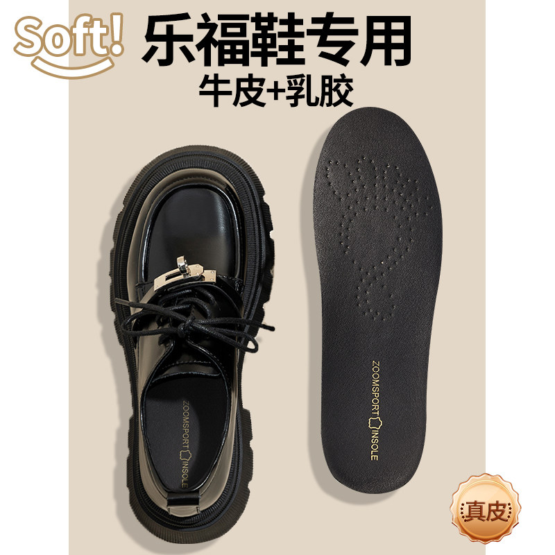 乐福鞋专用皮鞋鞋垫牛皮真皮女士超软久站不累软底舒适圆头1CM厚