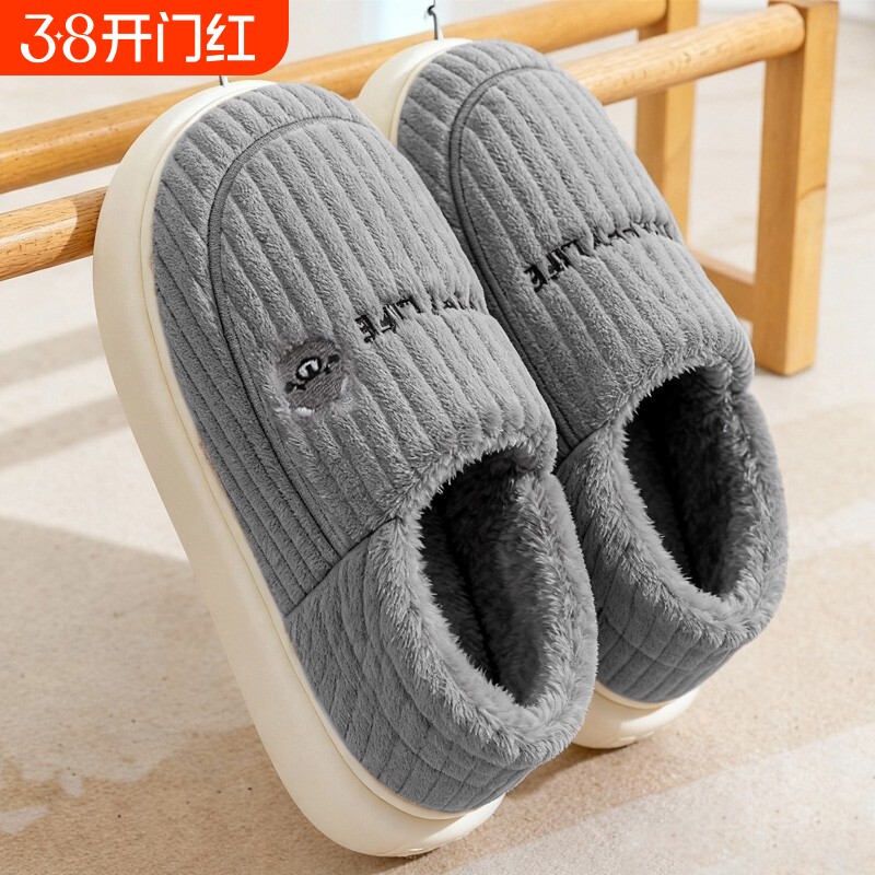 厚底棉拖鞋女士毛绒保暖2025新款秋冬季居家室内防滑月子棉拖鞋男