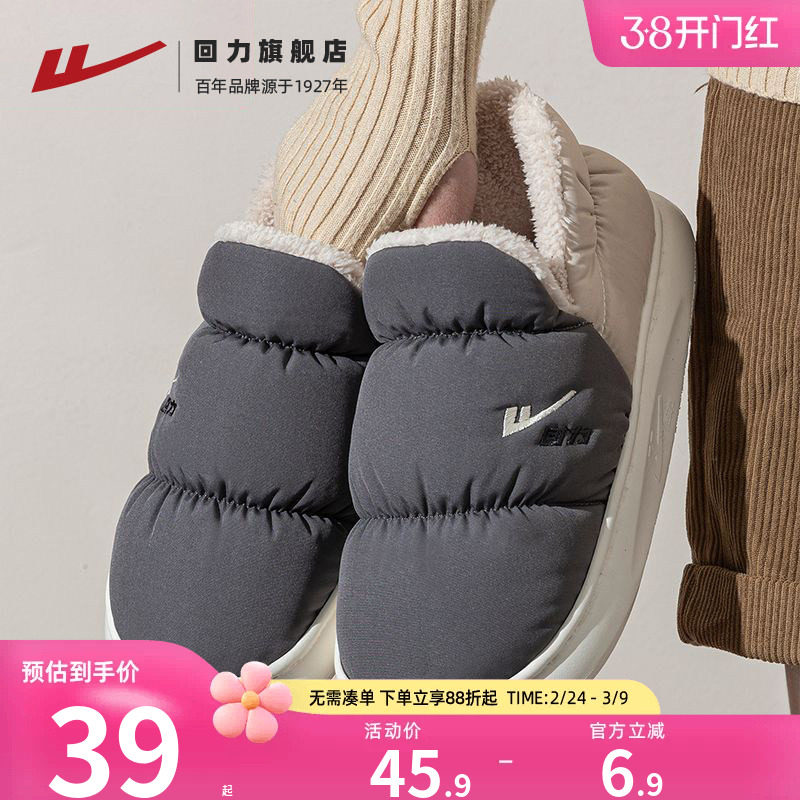 回力棉鞋男冬季男士拖鞋室内居家加厚包跟棉拖鞋冬天加绒保暖男鞋