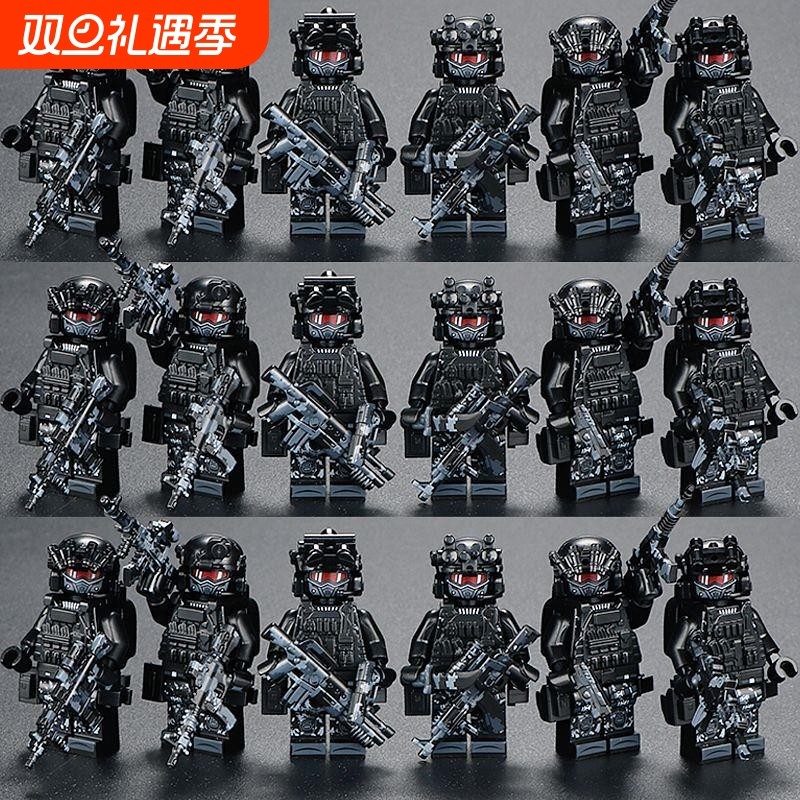 三角洲重装防爆黑豹特警人仔特种兵军事帅气颗粒拼装积木益智玩具