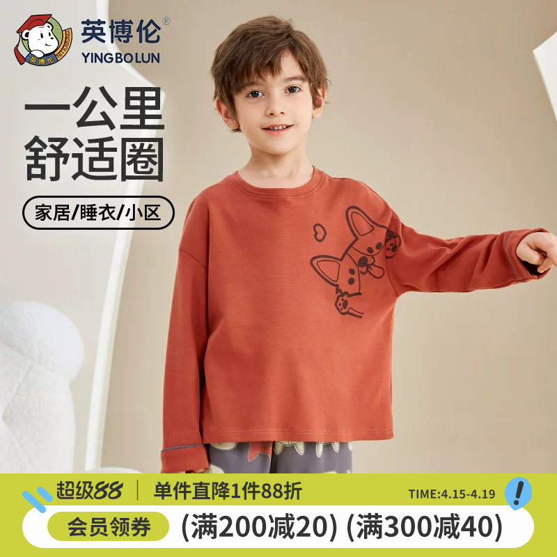 英博伦男童家居服套装2026新款男孩纯棉长袖春秋季套头中大童睡衣