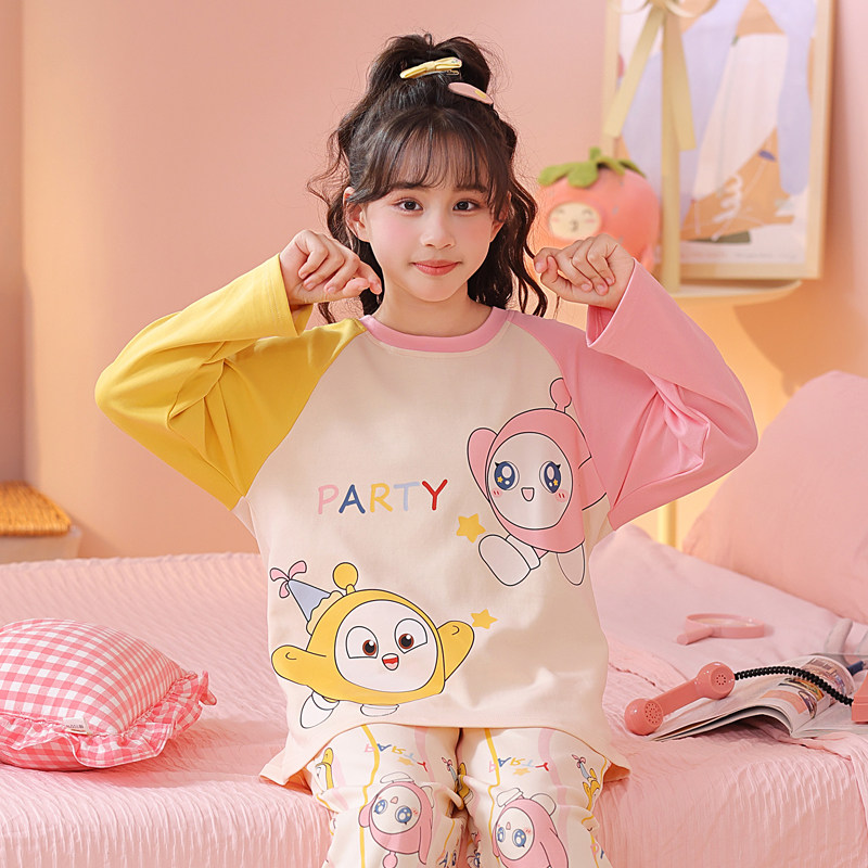 雪雅可儿童睡衣女孩春秋纯棉公主长袖a类女童家居服大童宝宝套装