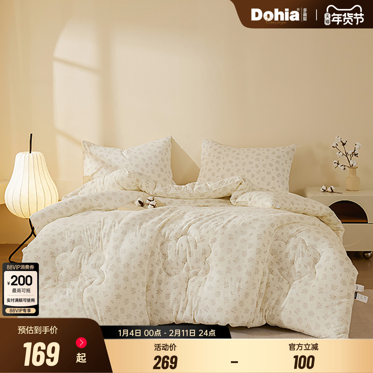 多喜爱棉花被秋冬被芯被子新疆棉絮被褥棉花棉被宿舍冬被棉春秋被