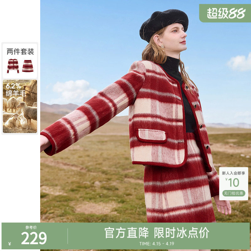 IEF/爱依服【微胖】大码女装套装2026冬季新款西服格子短裙两件套