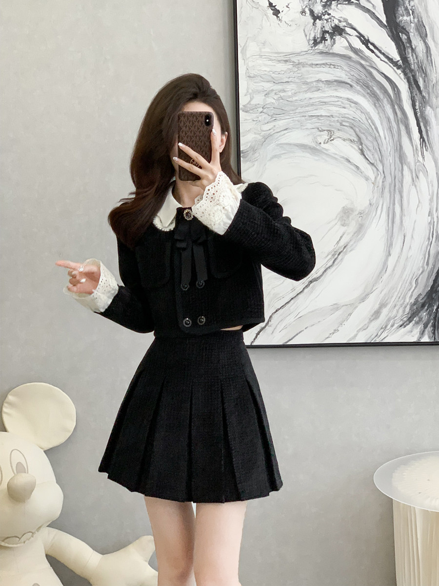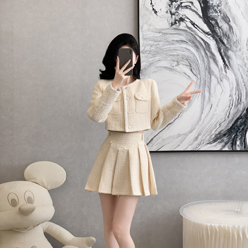小香风温柔套装裙女秋冬季新款爆款小个子百褶短裙高端时尚两件套