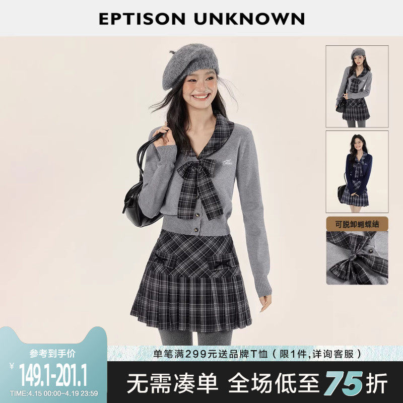 EPTISON套装女2025冬季新款短款毛衣外套格纹百褶裙学院风两件套