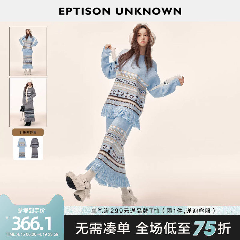 EPTISON针织套装女2025冬季新款费尔岛毛衣半身裙时尚条纹两件套