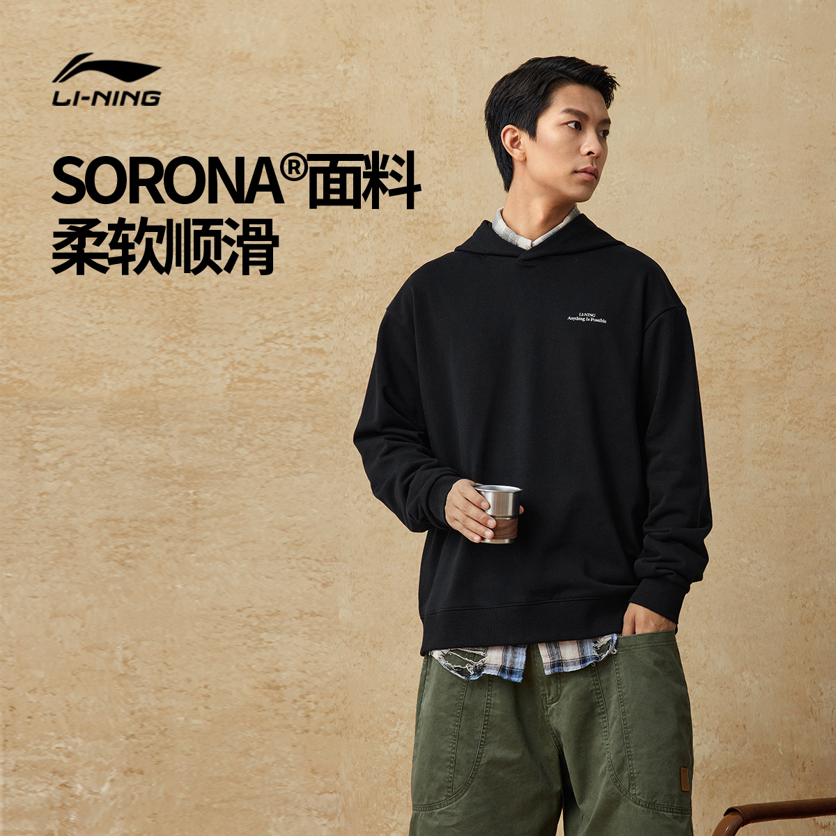 李宁卫衣男士春秋官方美式长袖宽松上衣情侣连帽衫女士复古运动服