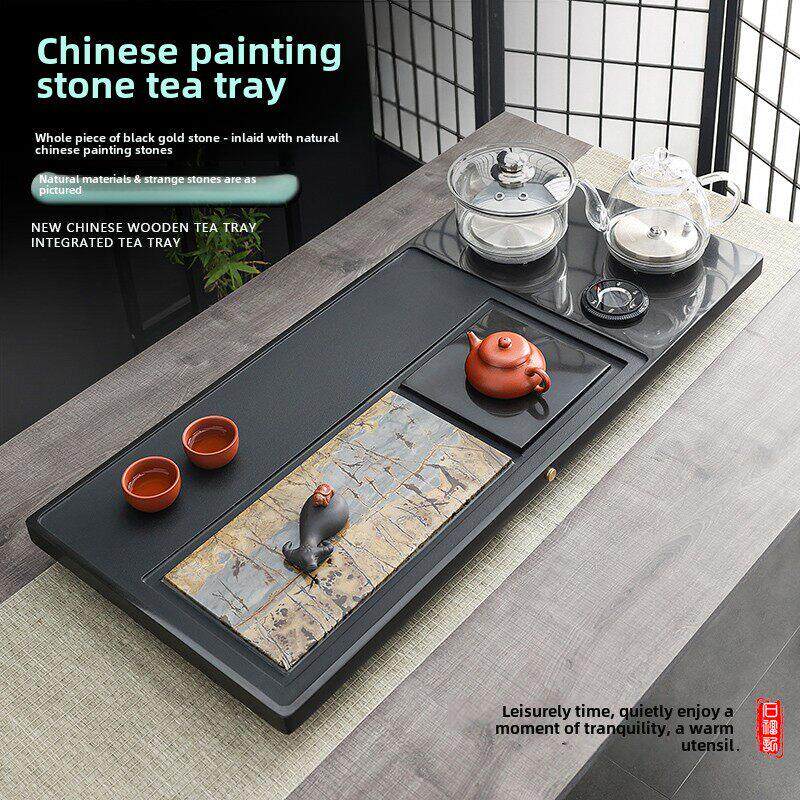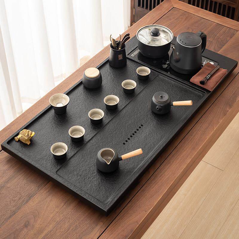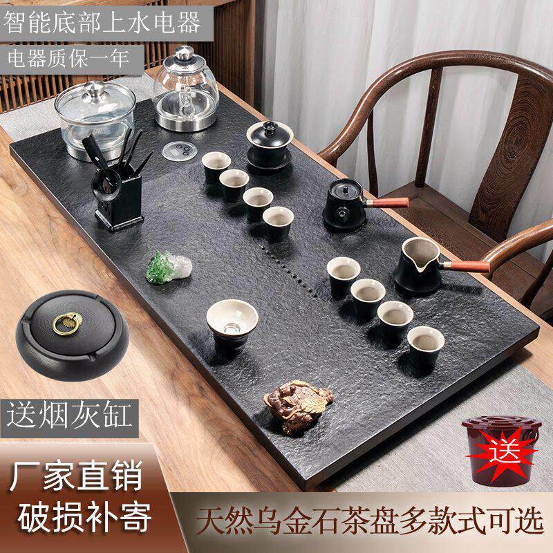 天然乌金石茶盘全自动一体茶具套组家用功夫茶具电磁炉客厅大茶台