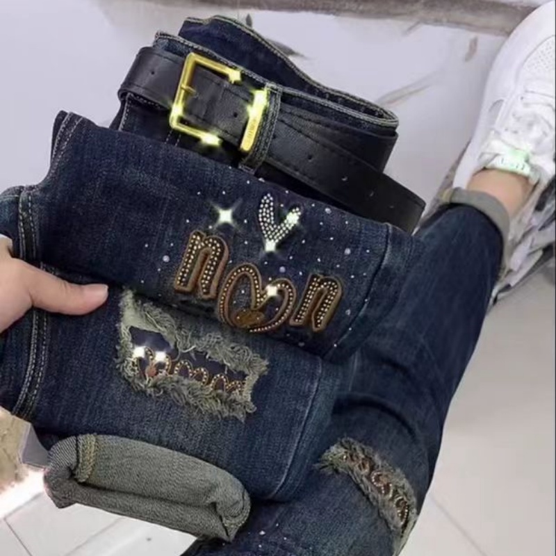 2025欧货新款弹力修身牛仔裤女秋季九分刺绣时尚显瘦小脚哈伦裤潮