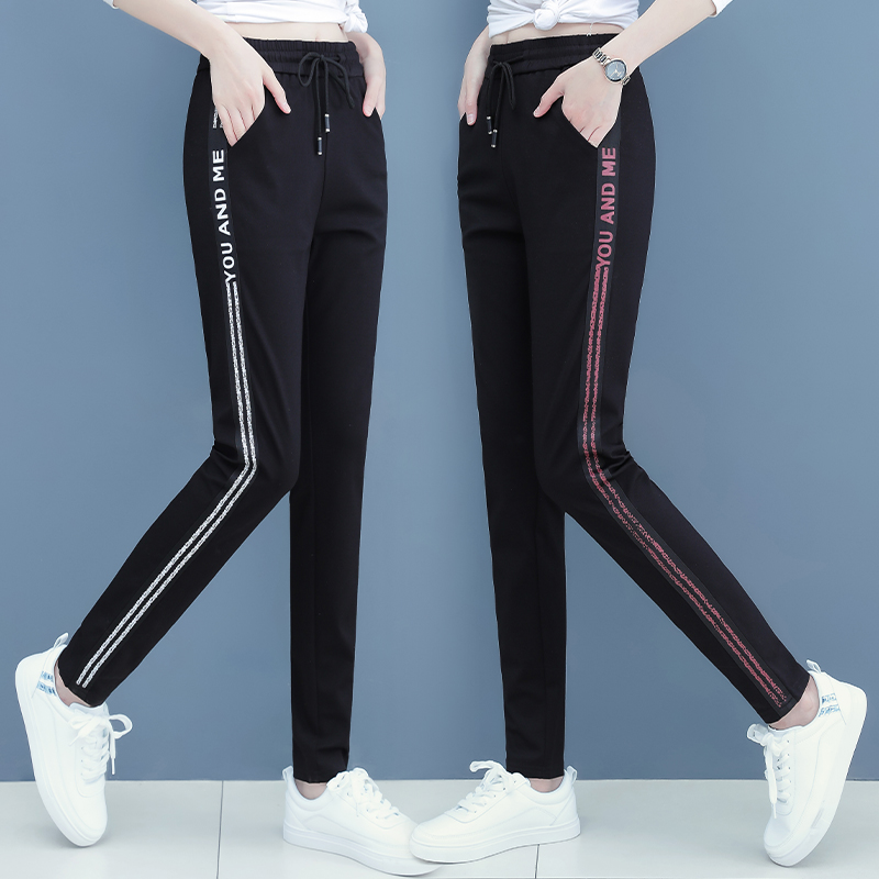 福气烫钻春秋韩版弹力小脚松紧腰哈伦裤女长裤修身显瘦百搭休闲裤