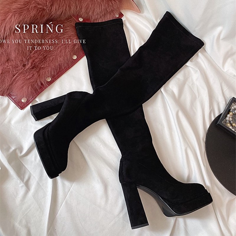 高跟防水台弹力靴女2025年秋冬新款厚底粗跟过膝靴瘦瘦靴套筒长靴