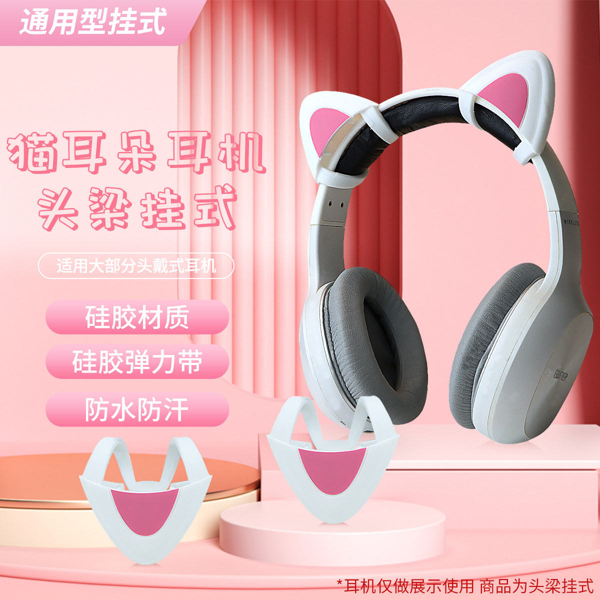 适用头戴式耳机通用型猫耳朵可爱装饰挂饰无线蓝牙有线耳麦雷蛇漫步者头梁配件