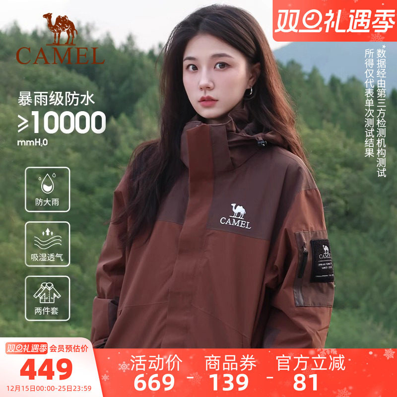 【清仓】骆驼冲锋衣男女外套三合一两件套防风防水旅游户外登山服