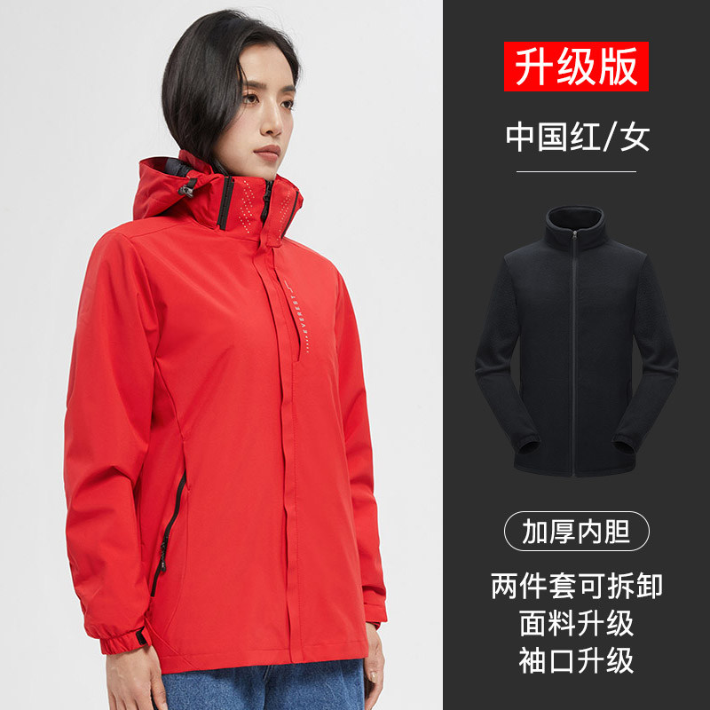 秋冬季冲锋衣男女两件套三合一加绒加厚防水透气登山服可定制logo