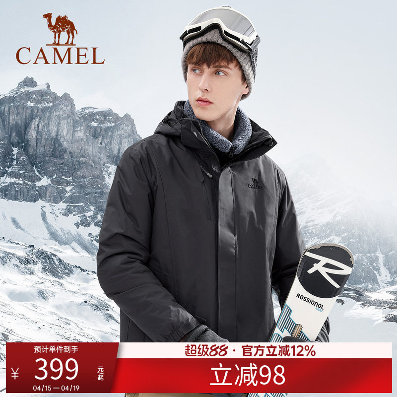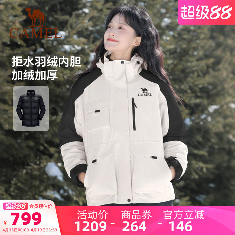 [羽绒内胆]骆驼羽绒冲锋衣男女加绒加厚两件套外套三合一滑雪服装