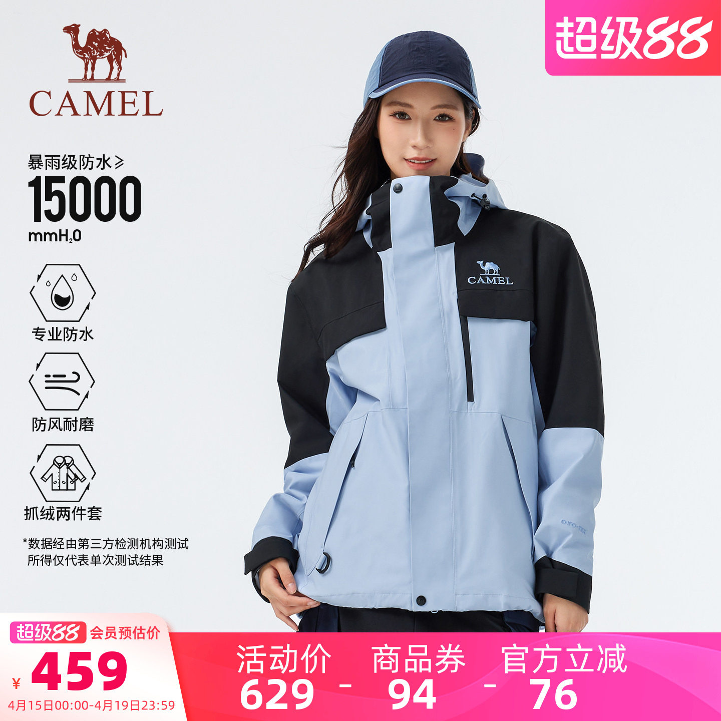 骆驼三合一冲锋衣男女可拆卸两件套户外防暴雨防风登山服进藏外套