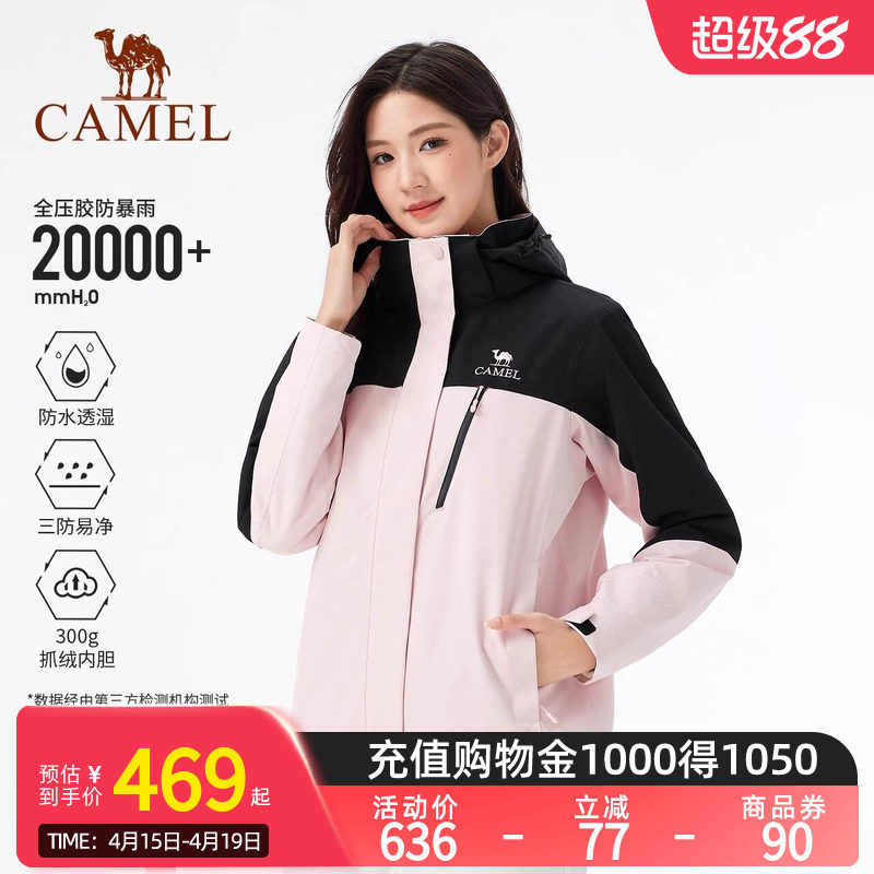 骆驼三合一冲锋衣男女款防风冲锋衣新款拼色防水两件套登山服外套