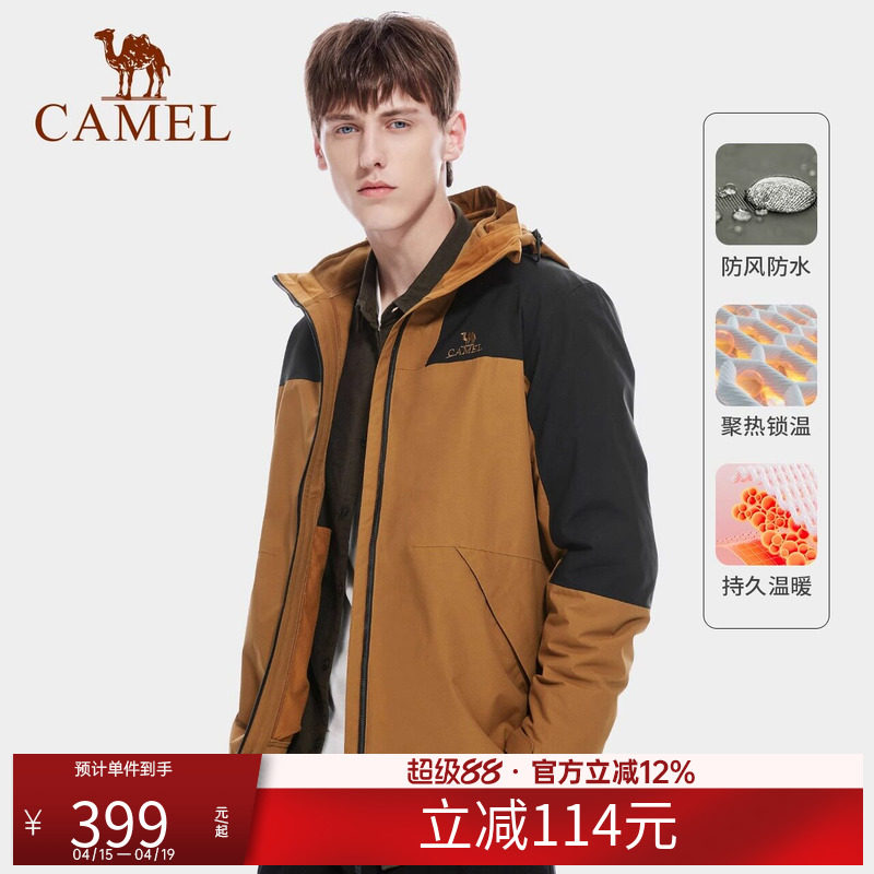 【羽绒内胆】骆驼户外羽绒服冲锋衣三合一可拆卸两件套冬外套男女