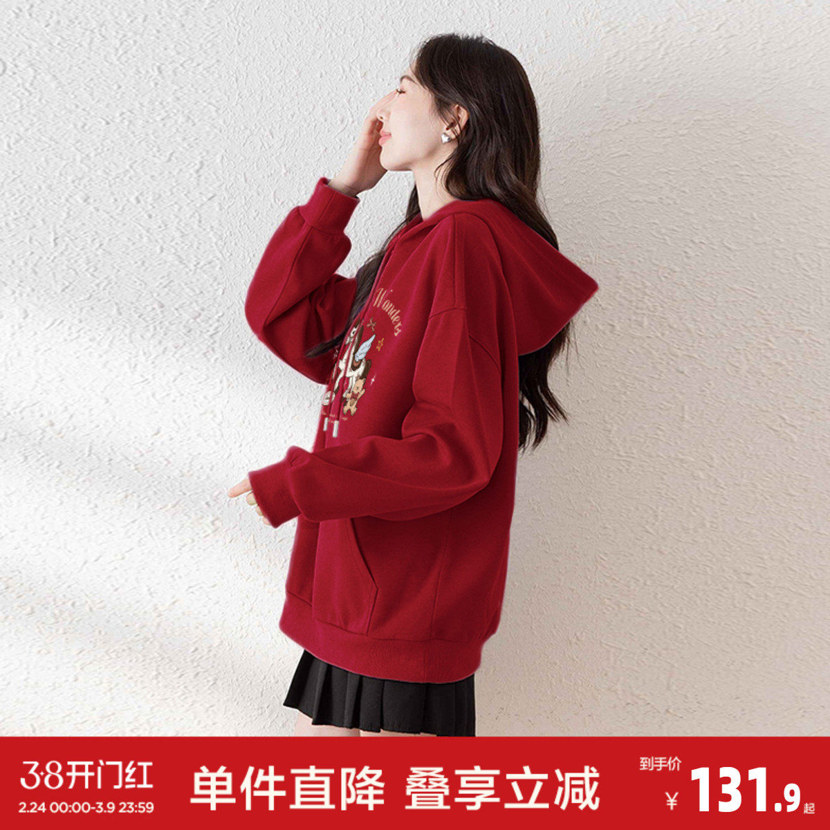 唐狮2026春季新款卫衣女印花连帽休闲宽松上衣时尚宽松卫衣外套