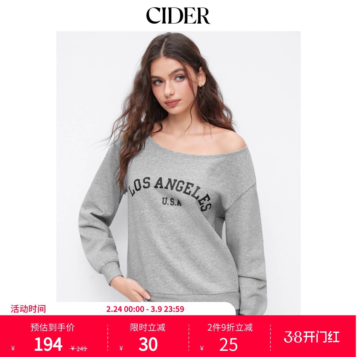 CIDER春秋新品女装洛杉矶风不对称领宽松卫衣114706160
