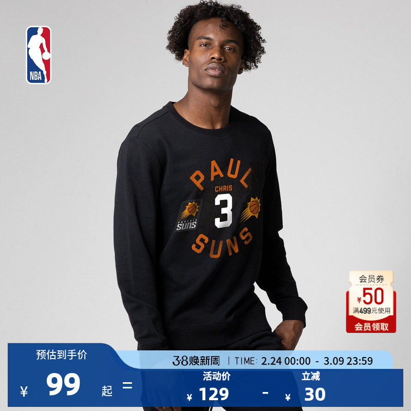 NBA官方正品男款早秋运动休闲圆领舒适宽松卫衣上衣太阳队保罗