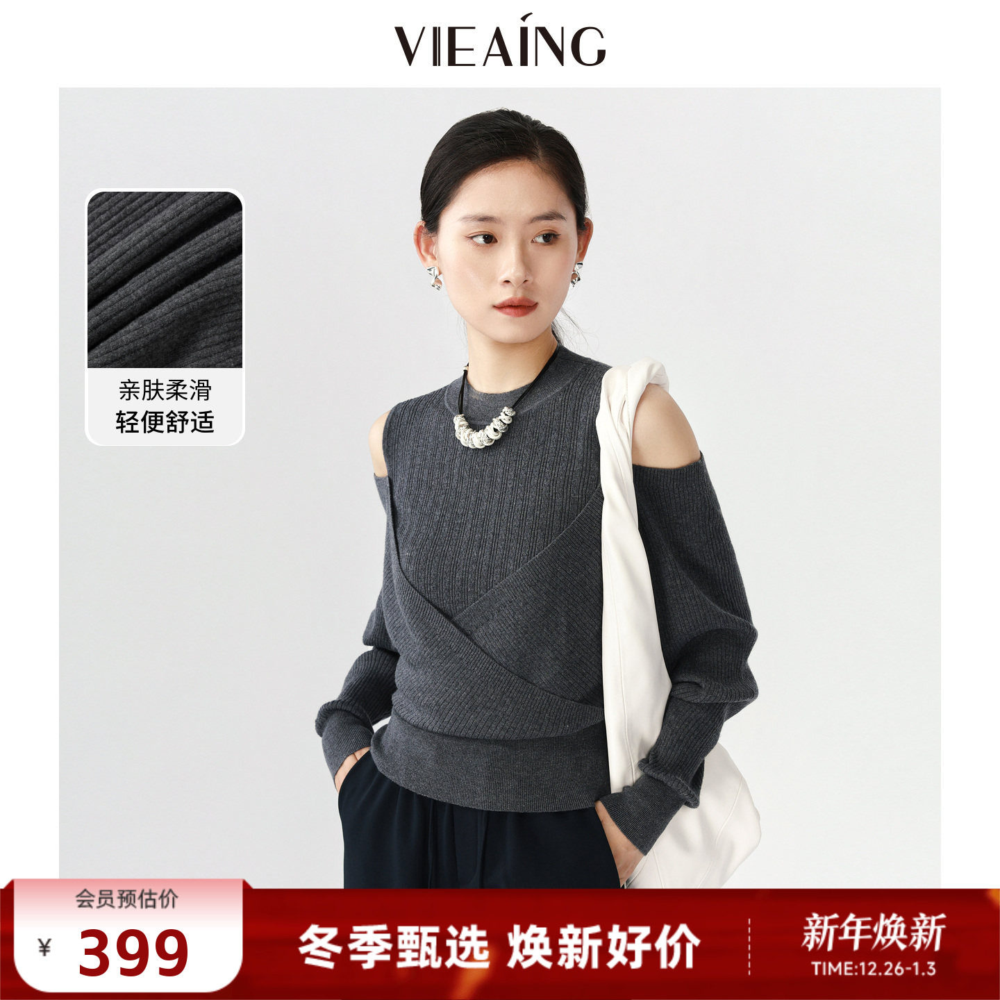 VIEA.ING薇迎商场同款露肩针织衫女2025冬季新款灰色毛衣套头上衣