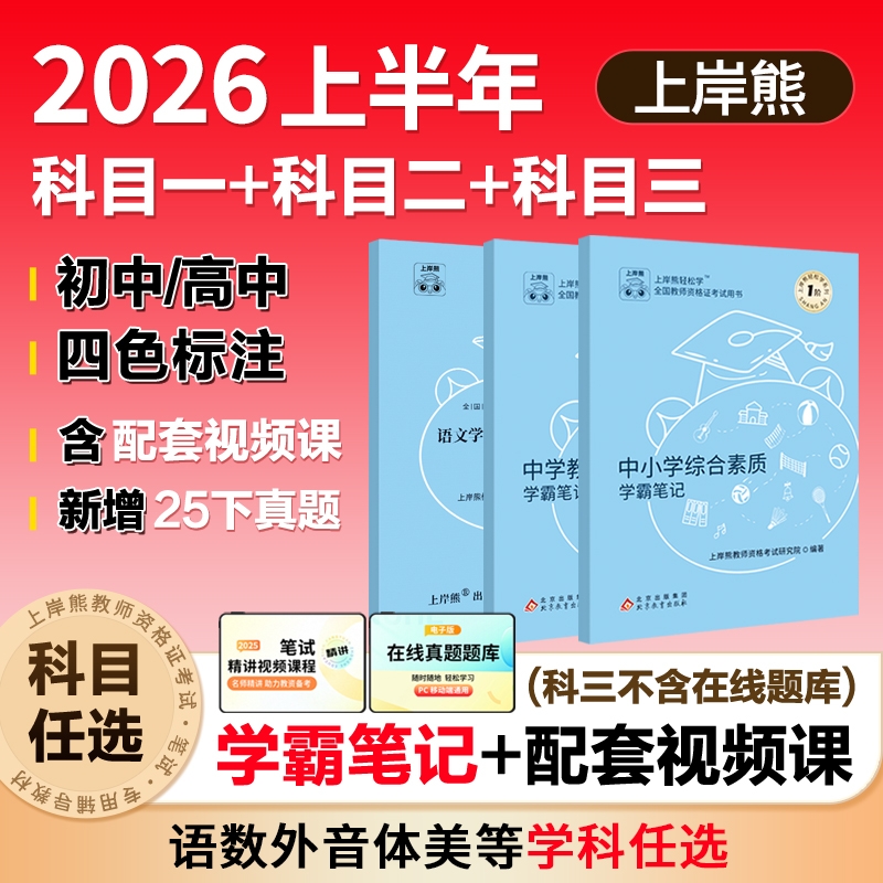 上岸熊中学教资2026上半年初中高中教师资格证笔试考试教材重点学霸笔记资料科一二科目三英语美术语文数学体育中职综合素质真题