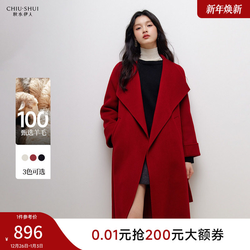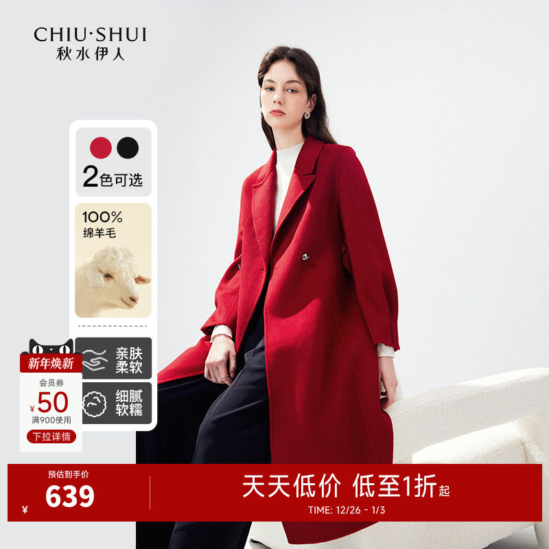 秋水伊人红色双面呢大衣女羊毛国风新中式2025秋冬中长款毛呢外套