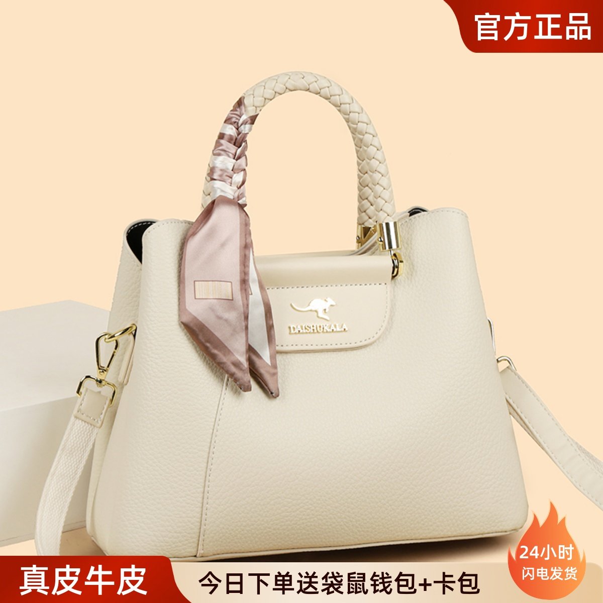 袋鼠女士真皮包2025年秋冬新款手提包女牛皮包实用专柜正品大牌