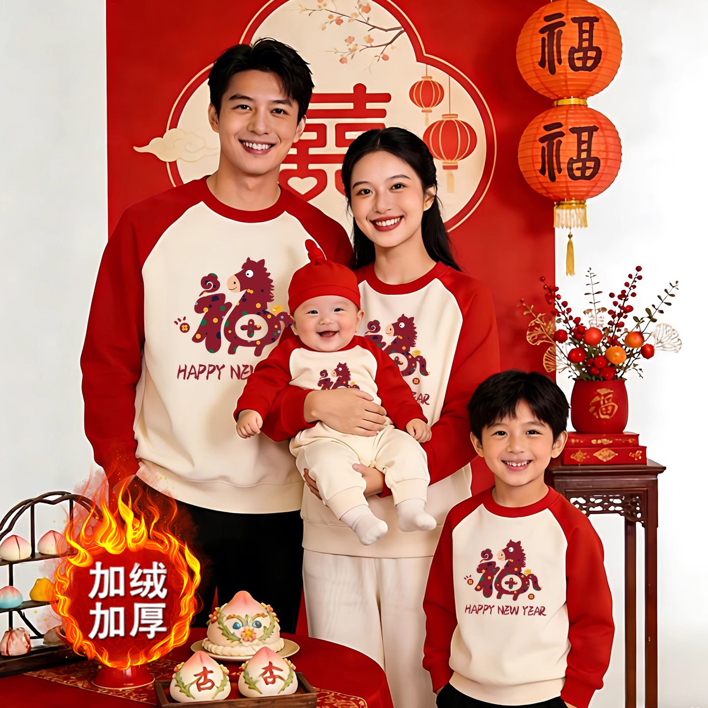 亲子装秋冬2026新款一家三口四口加绒加厚卫衣马年母女拍照全家福