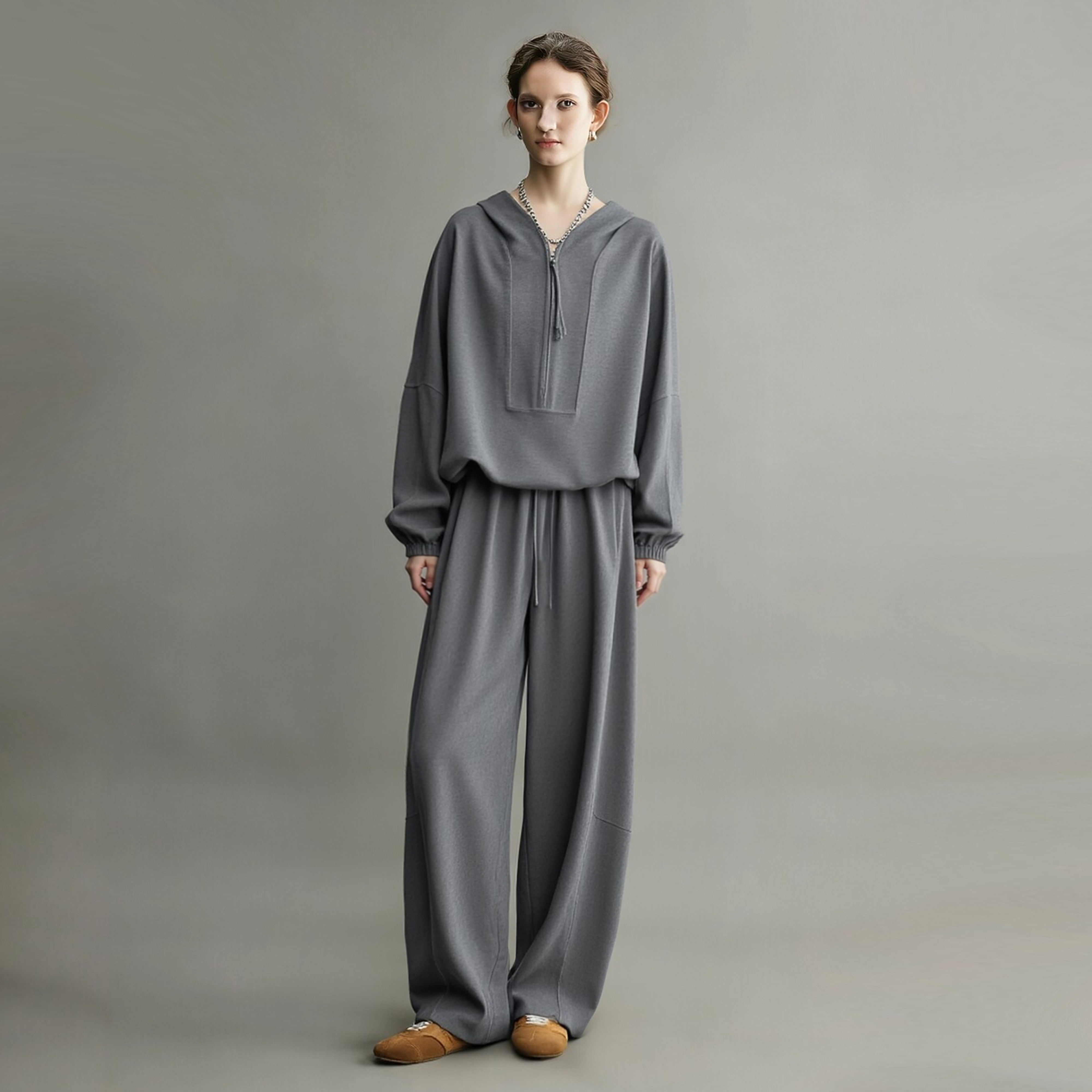 紫涵韩系运动休闲针织卫衣裤套装女春秋新款连帽外套阔腿裤两件套
