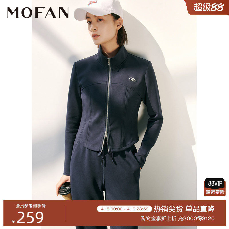 暮色蓝立领卫衣女MOFAN摩凡春秋新款运动休闲外套修身两件套装