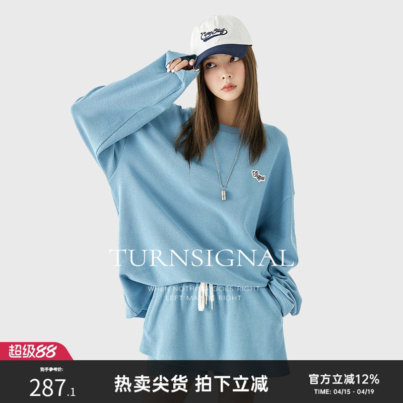 TurnSignal潮牌一字领卫衣长裤套装女春秋2026新款休闲运动两件套