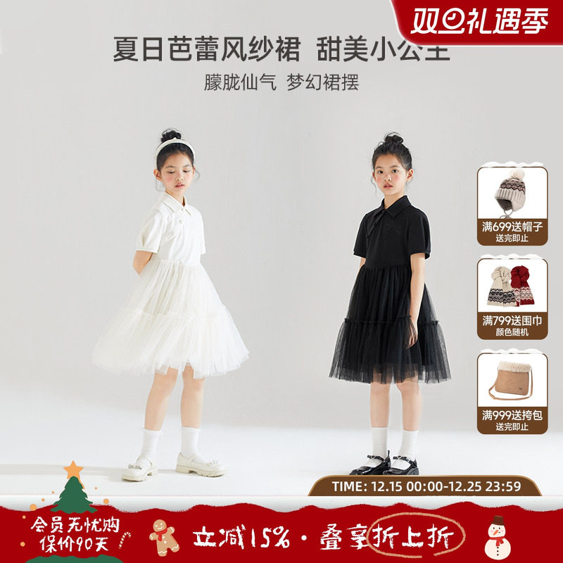 【亲肤透气】女童polo领短袖网纱连衣裙甜美可爱儿童洋气时髦长裙