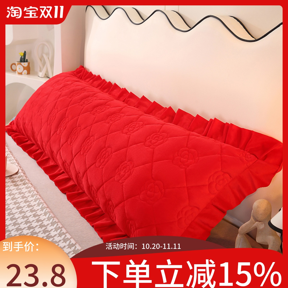 宝宝绒加绒大红长枕套双人加长枕头套夫妻枕芯套1.2米1.5米可拆洗