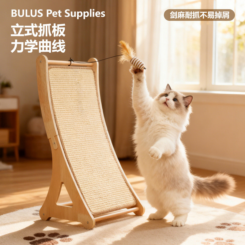BULUS/布鲁仕新款立式猫抓板剑麻耐抓不易掉屑力学曲线猫玩具用品