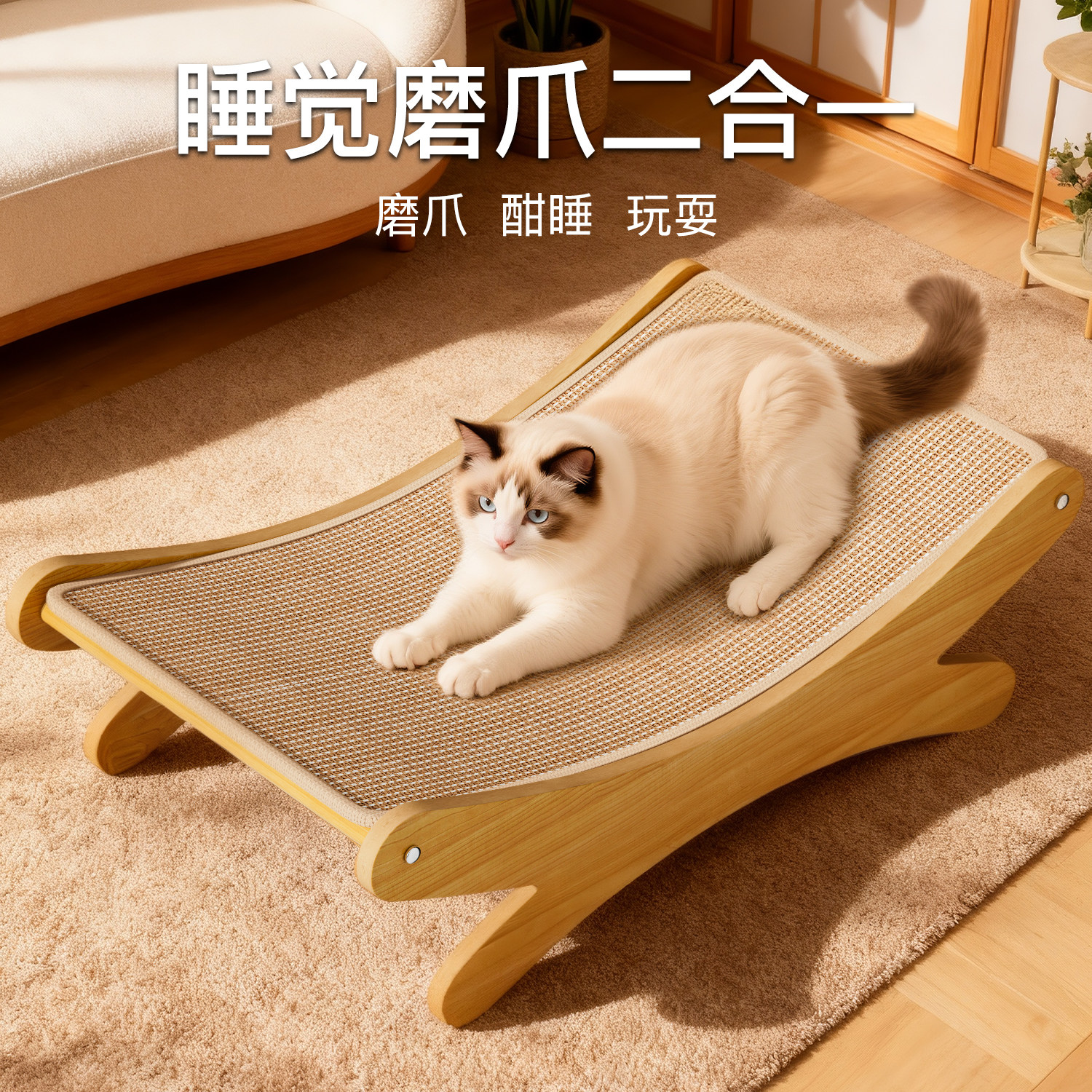 喵丽丝猫抓板猫窝一体剑麻猫抓球滚轮猫咪沙发躺椅耐抓耐磨不掉屑
